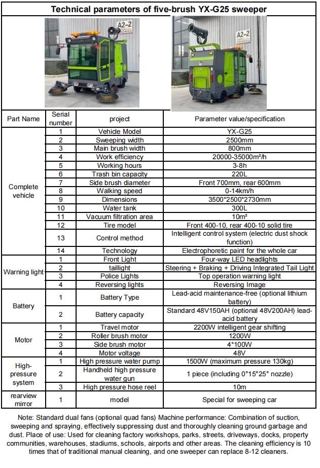 Die Reinigungseffizienz ist zehnmal so hoch wie bei der herkömmlichen manuellen Reinigung, und eine Kehrmaschine kann 8–12 Reiniger ersetzen.